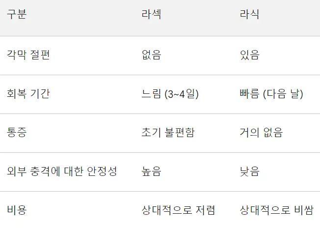 2. 라섹과 라식의 주요 차이점