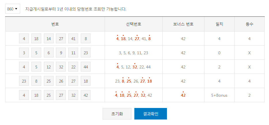 이런식으로 로또 용지와 당첨 번호를 확인할 수 있는데요. 당첨여부와 함께 맞는 번호의 표시가 되고 결과를 알 수 있어 빠른 시간에 여러장의 결과를 확인할 수 있습니다. 하지만 프로그램으로 너무 빠르게 하다보니 긴장되는 재미가 약간 떨어지고 오류로 인해 잘못 나올경우가 있을 수도 있으니 반드시 실제확인은 해보셔야 합니다.