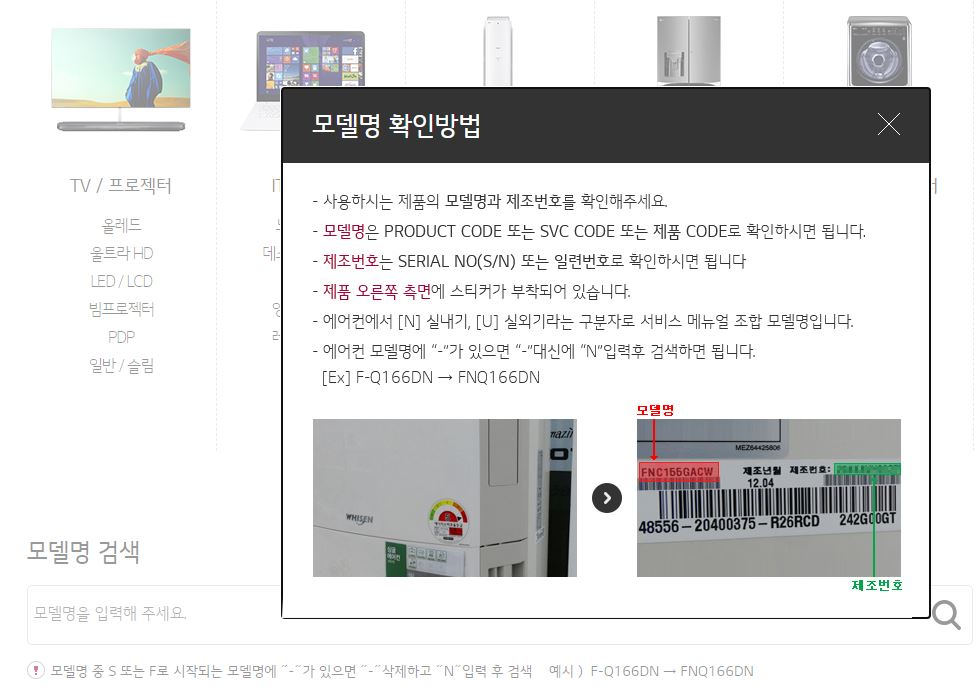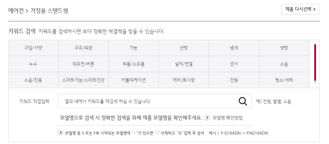 그 외에 휘센 에어컨 서비스센터에서는 키워드 검색으로 질문사항에 답하는 게시판이 있는데요. 가벼운 문제라고 생각이 되어진다면 이용해서 문제해결방안을 확인해보시는 것도 좋아보입니다.