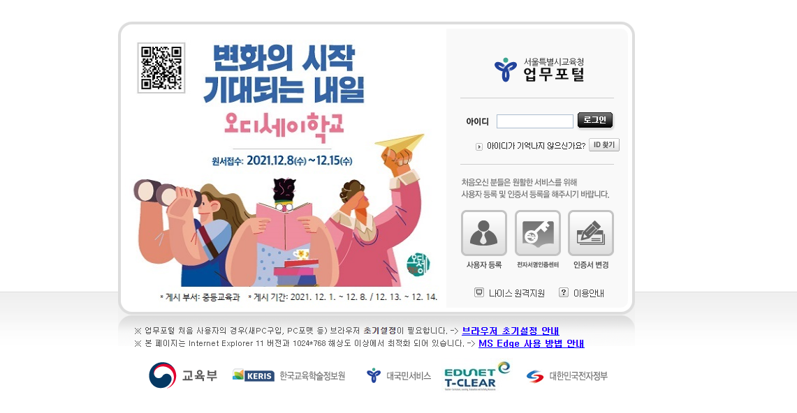 바로가기서울시교육청 업무포털 시스템 (neis.sen.go.kr)