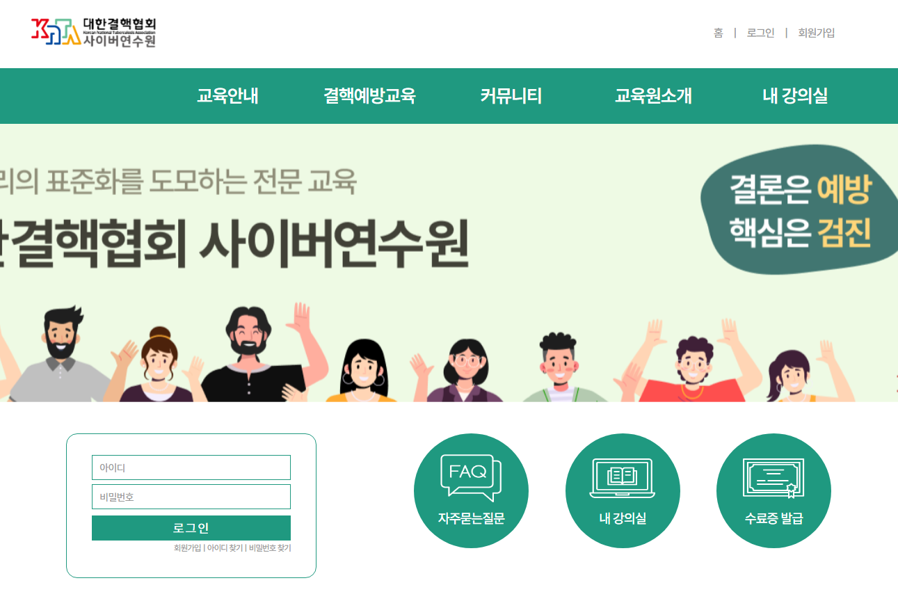 온라인 사이버연수원 홈페이지를 통해 접속하시고 로그인을 통하여 들어가시고 교육과정 수강완료해보시기 바랍니다. 의료인들이라면 예방과 검진을 위하여 결핵 전문교육 잘 확인해보시기 바랍니다.