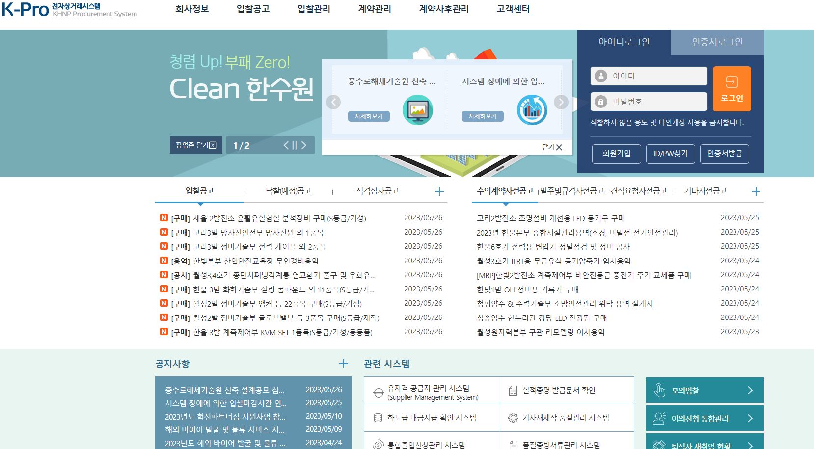 한수원 K-Pro 전자상거래시스템 (ebiz.khnp.co.kr)