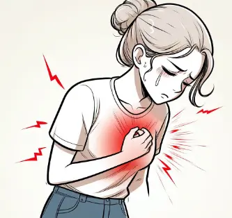 - 가심 중앙이나 왼쪽에 압박감이나 답답함이 느껴지는 통증